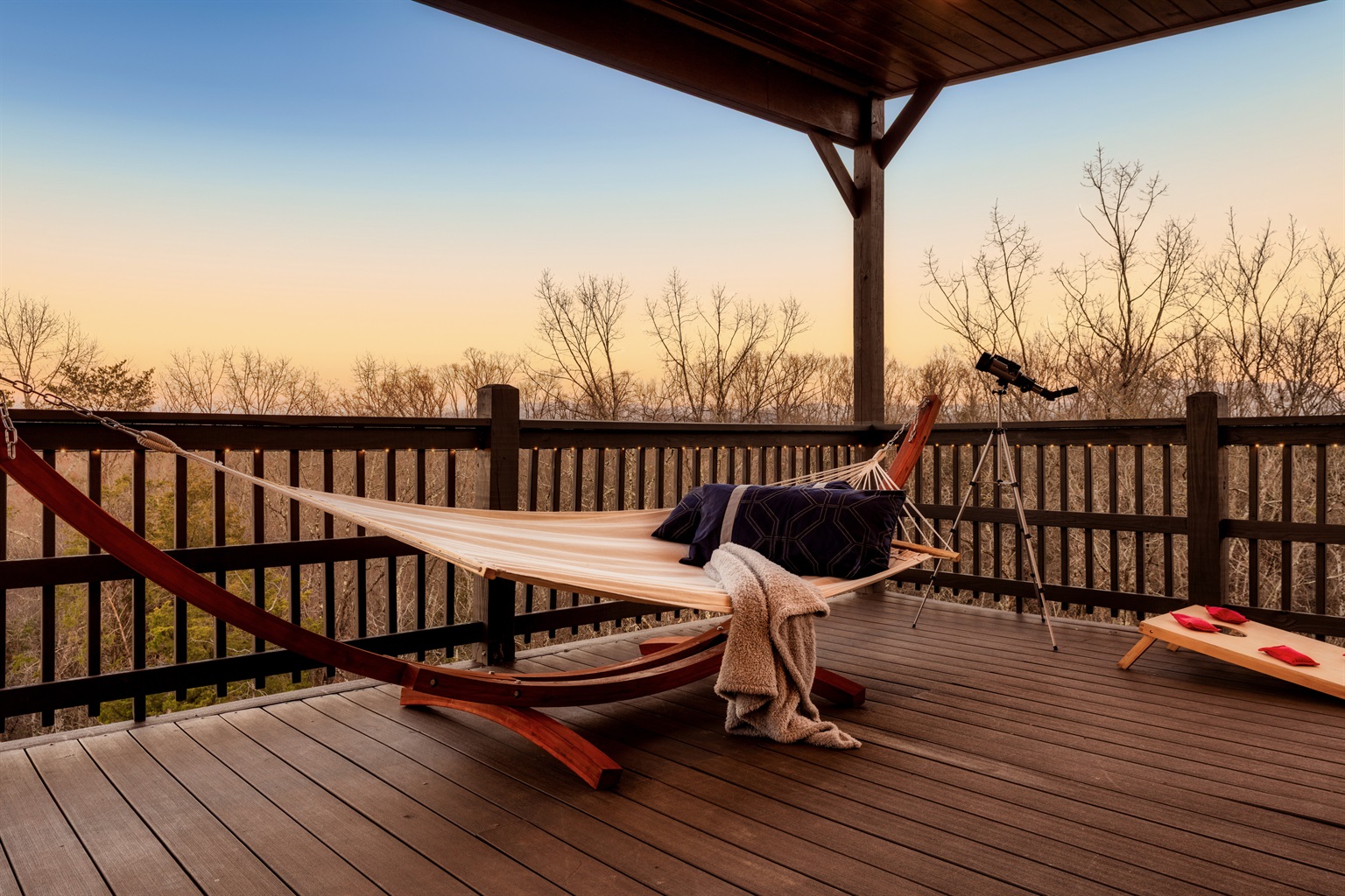 - Open-air Skydeck with hammock and telescope